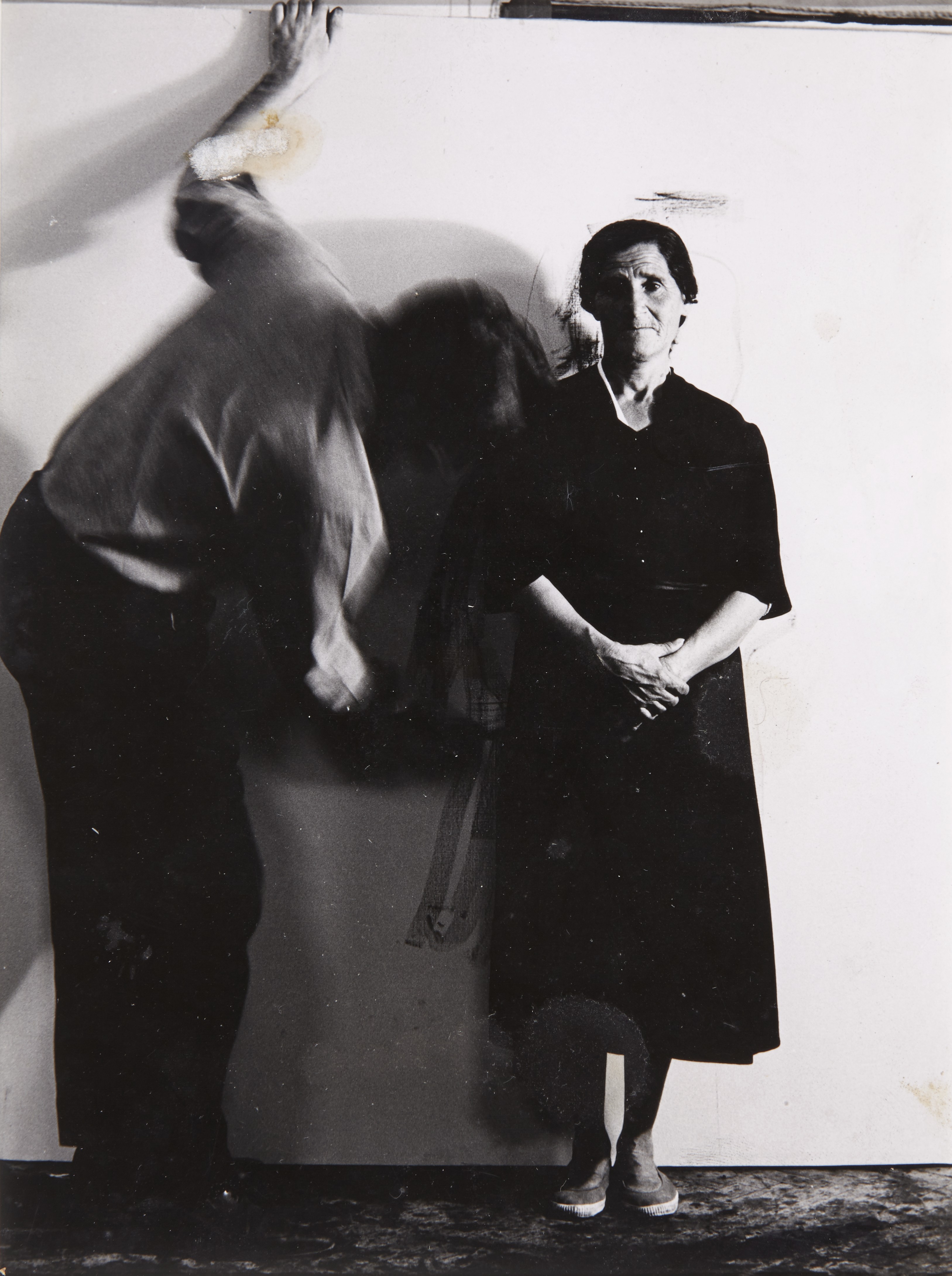 Fotografía de Juan Dolcet. Incorporación de personajes vivos a la tela (Encarnación Heredia, mujer sufriente), Galería Privada, Madrid, 1963