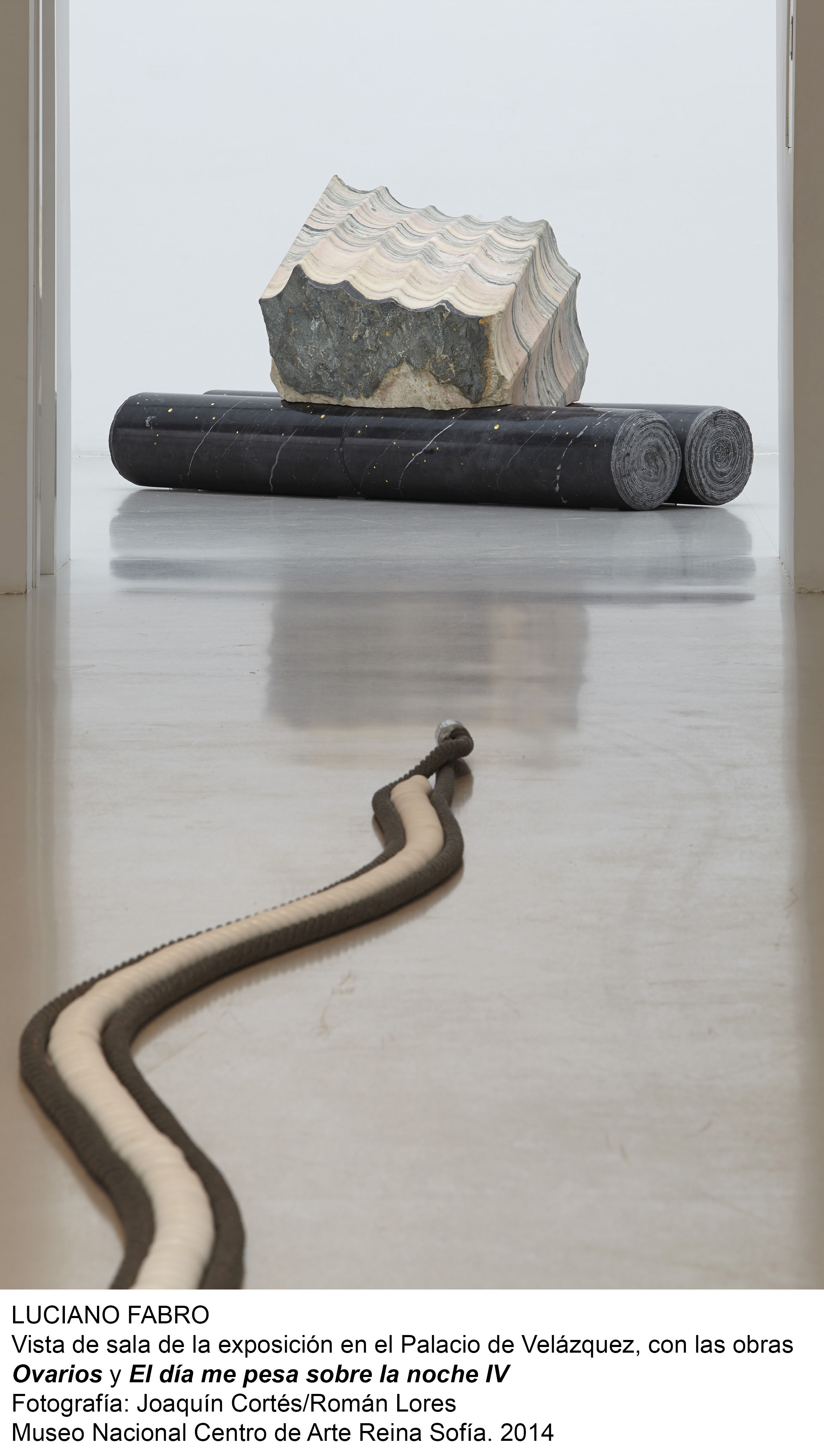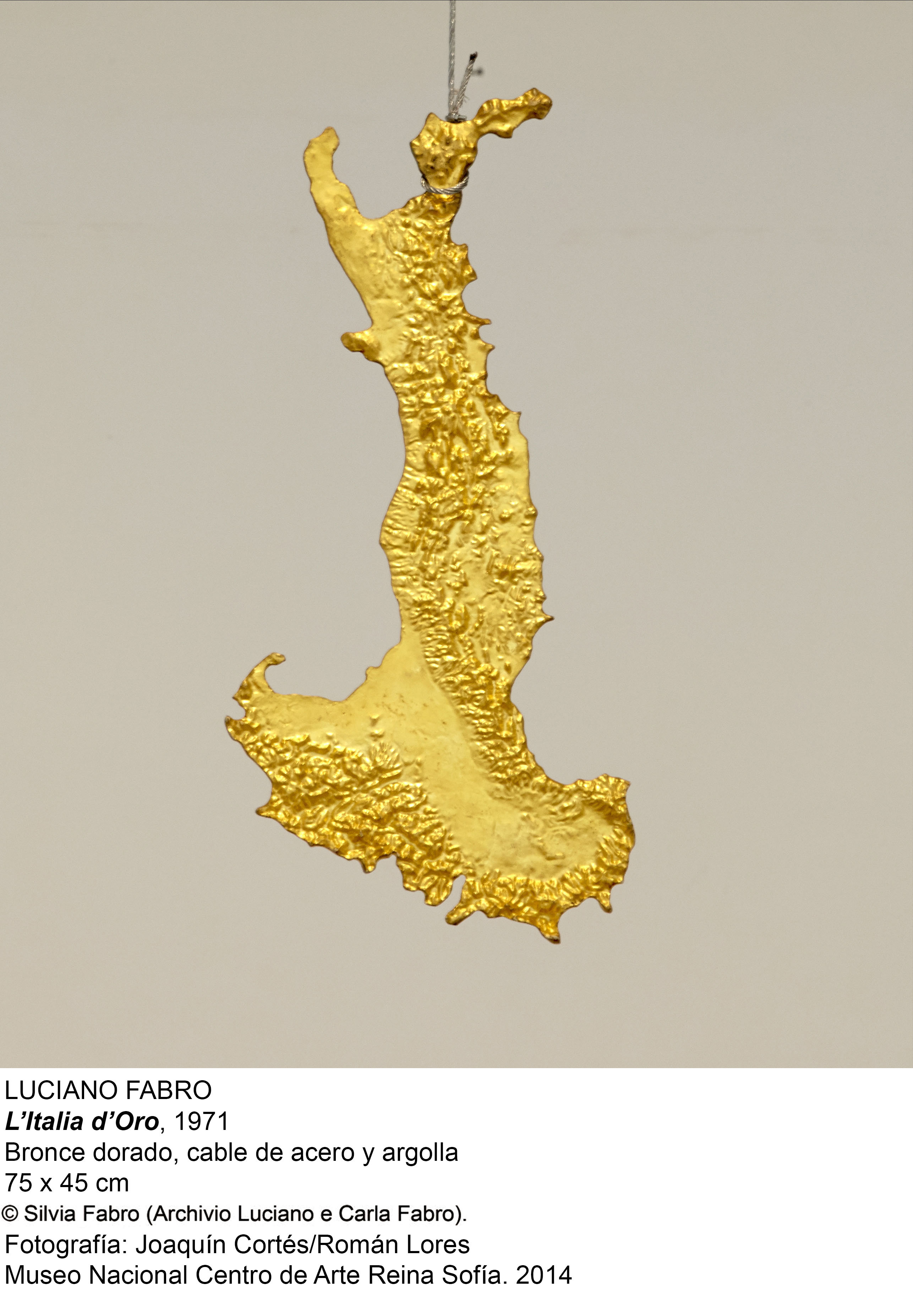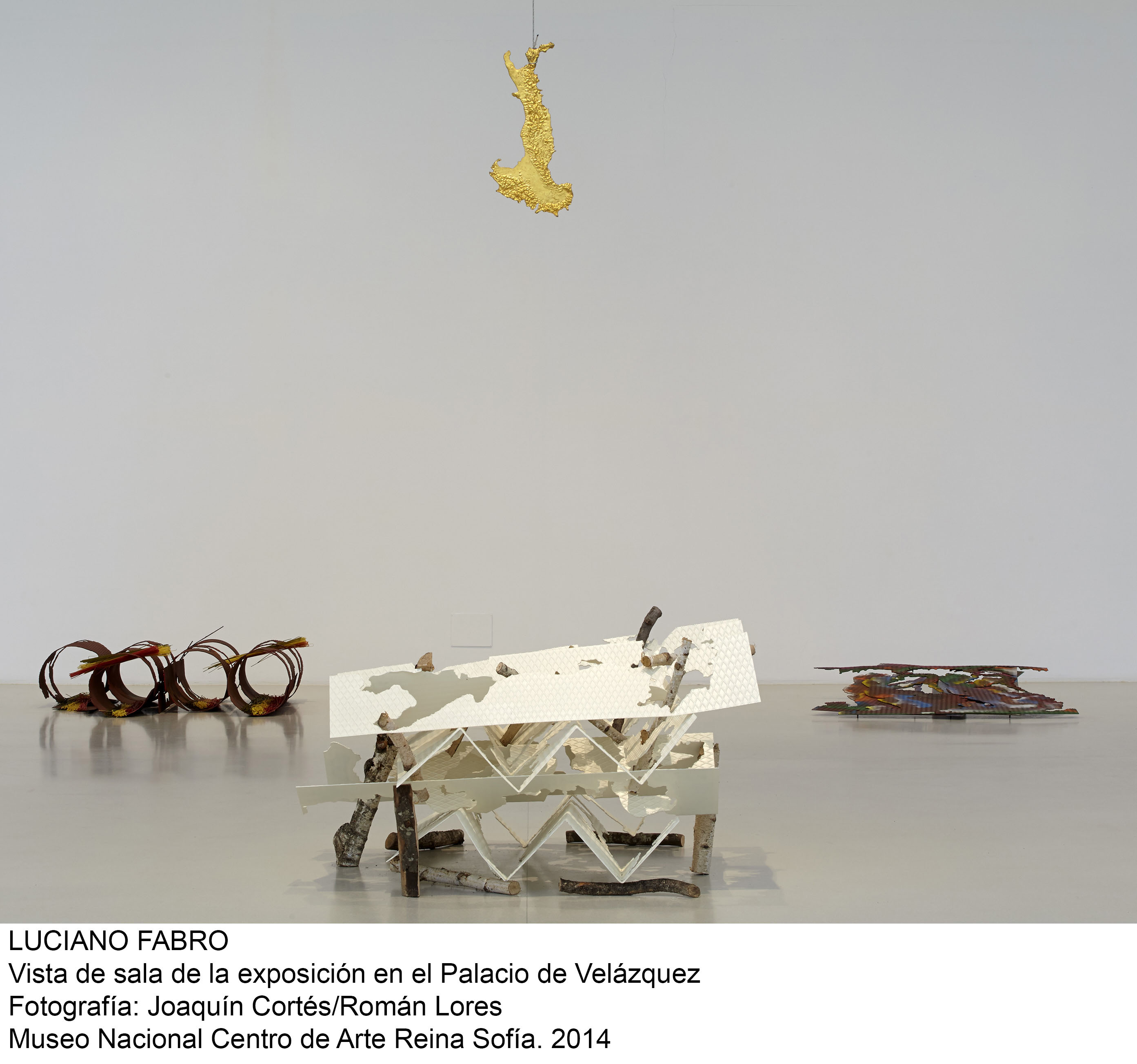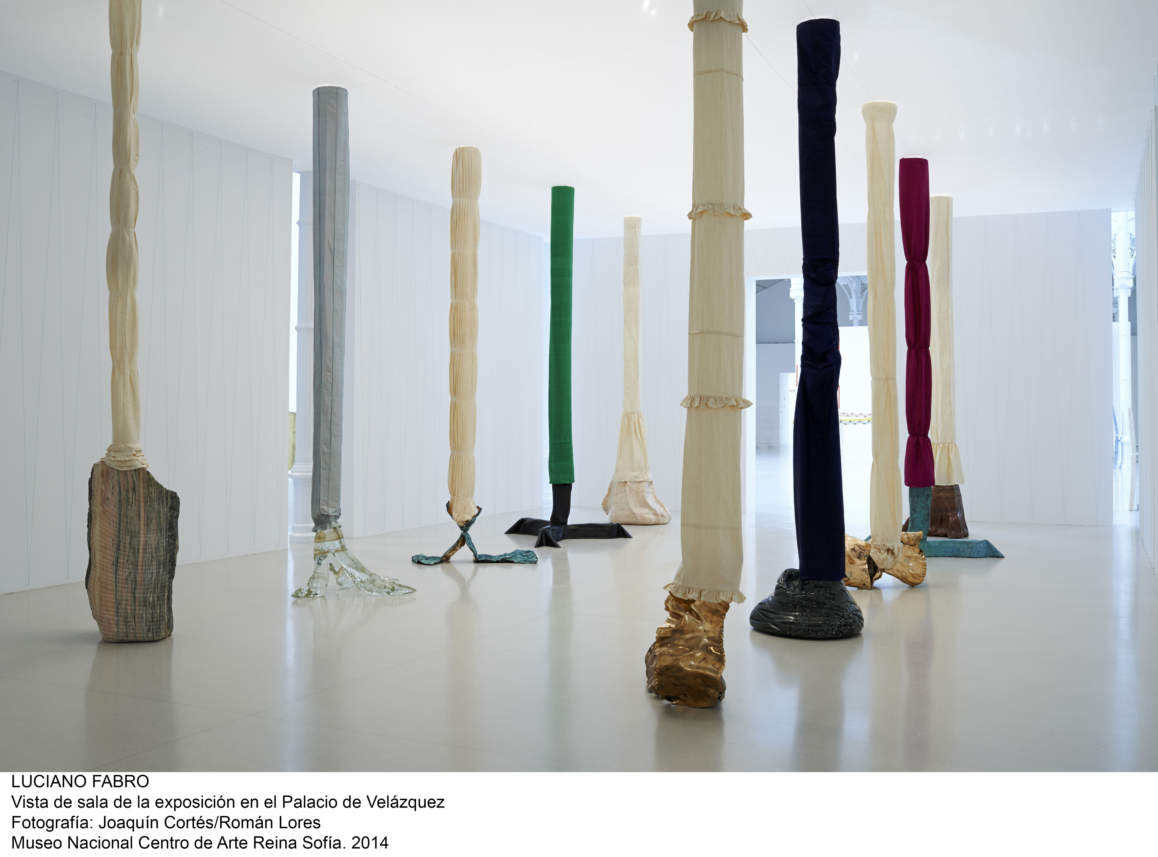 El artista italiano Luciano Fabro (Turín 1936 - Milán 2007), uno de los principales creadores del arte povera, llega al Palacio de Velázquez en la primera exposición que se realiza sobre su obra sin su participación directa. Esta antológica, compuesta principalmente por esculturas e instalaciones, reúne alrededor de 60 obras realizadas en mármol, seda, espejos, cristal de Murano, bronce, latón, pelo de reno, pasta italiana, acetato... y hace un recorrido por sus más de cuarenta años de creación.