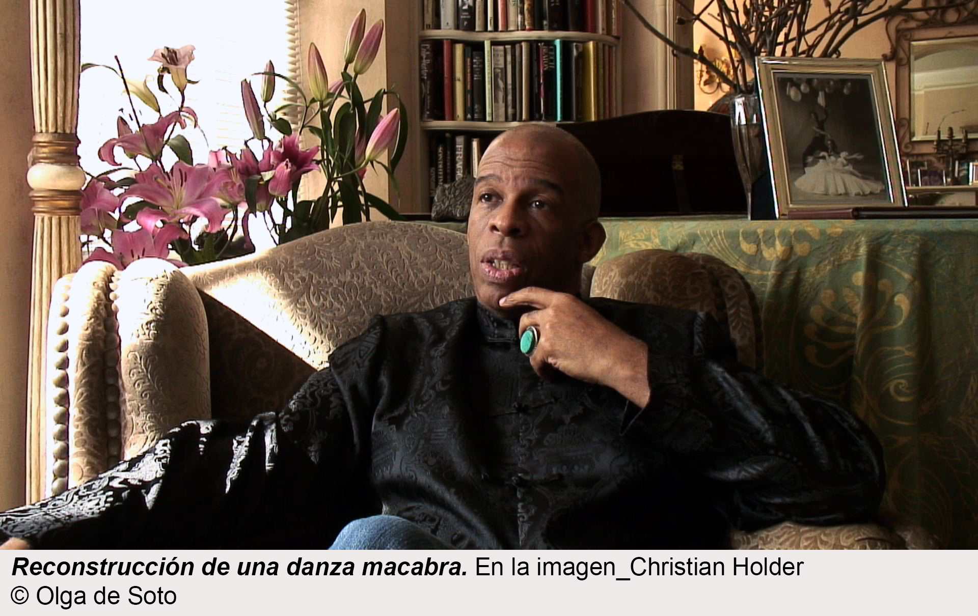 El trabajo de investigación de Olga de Soto sobre el propio medio de la danza, su historia, recepción y transmisión, la convierten en una figura clave que reflexiona tanto sobre la disciplina como otras cuestiones: el archivo de lo coreográfico, la memoria oral y corporal, o las posibilidades de traducción de lo escénico al espacio expositivo. De Soto abandonó en el 2000 la producción coreográfica tradicional para embarcarse en proyectos en los que la danza demuda la palabra. El cuerpo se vuelve sonido y el espacio físico se torna espacio mental. La voz como huella y el gesto como vehículo de la percepción son el corazón de Reconstrucción de una danza macabra.