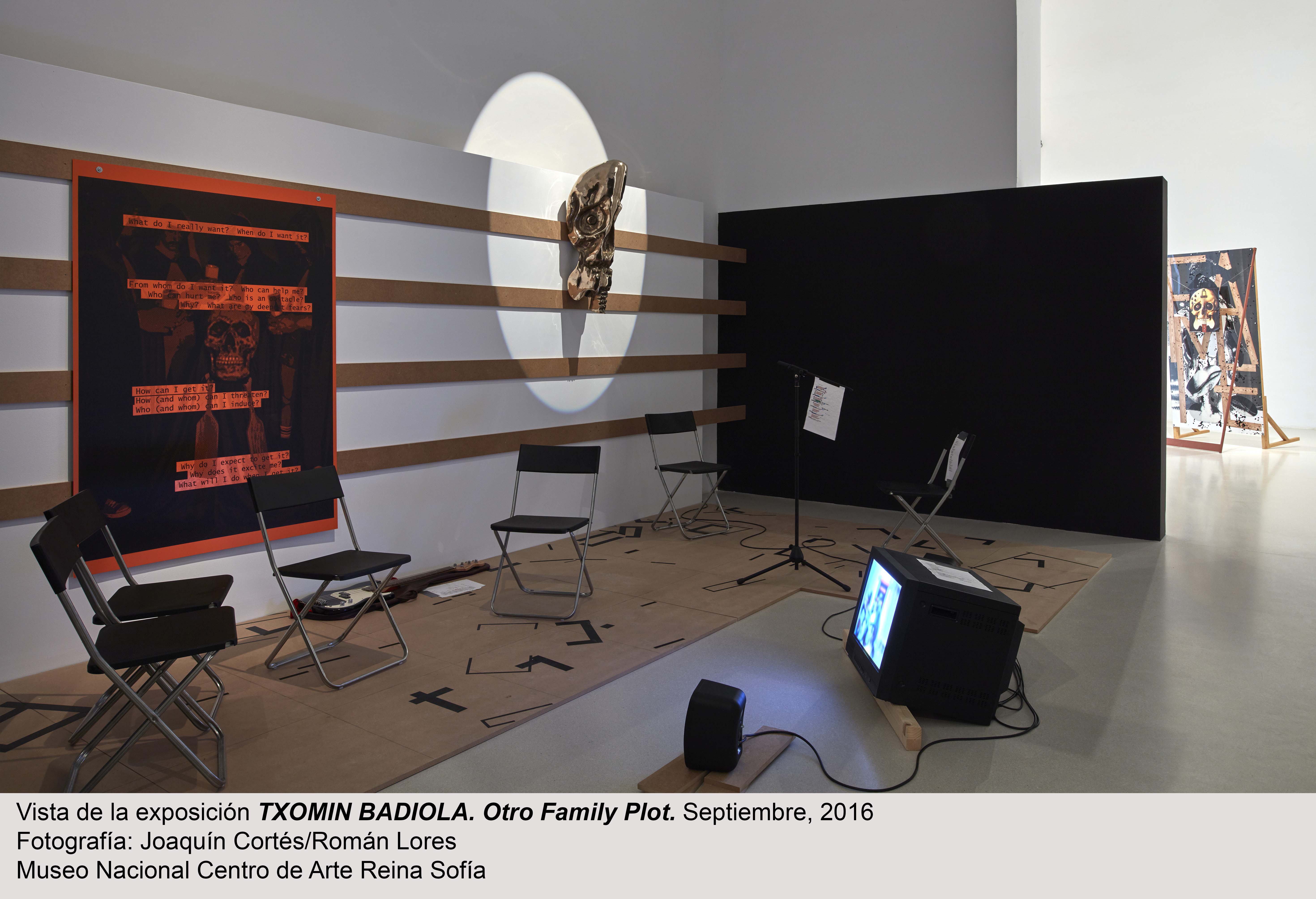 Bajo el título Otro Family Plot, la muestra es el resultado de un proceso continuado de diálogo y colaboración de Badiola tanto con artistas de su entorno como con el comisario de la exposición, João Fernandes. Ana Laura Aláez, Ángel Bados, Jon Mikel Euba, Pello Irazu, Asier Mendizabal, Itziar Okariz y Sergio Prego, han seleccionado diez de obras de Badiola cada uno, y han realizado grabaciones de los encuentros en que estos razonan su elección.